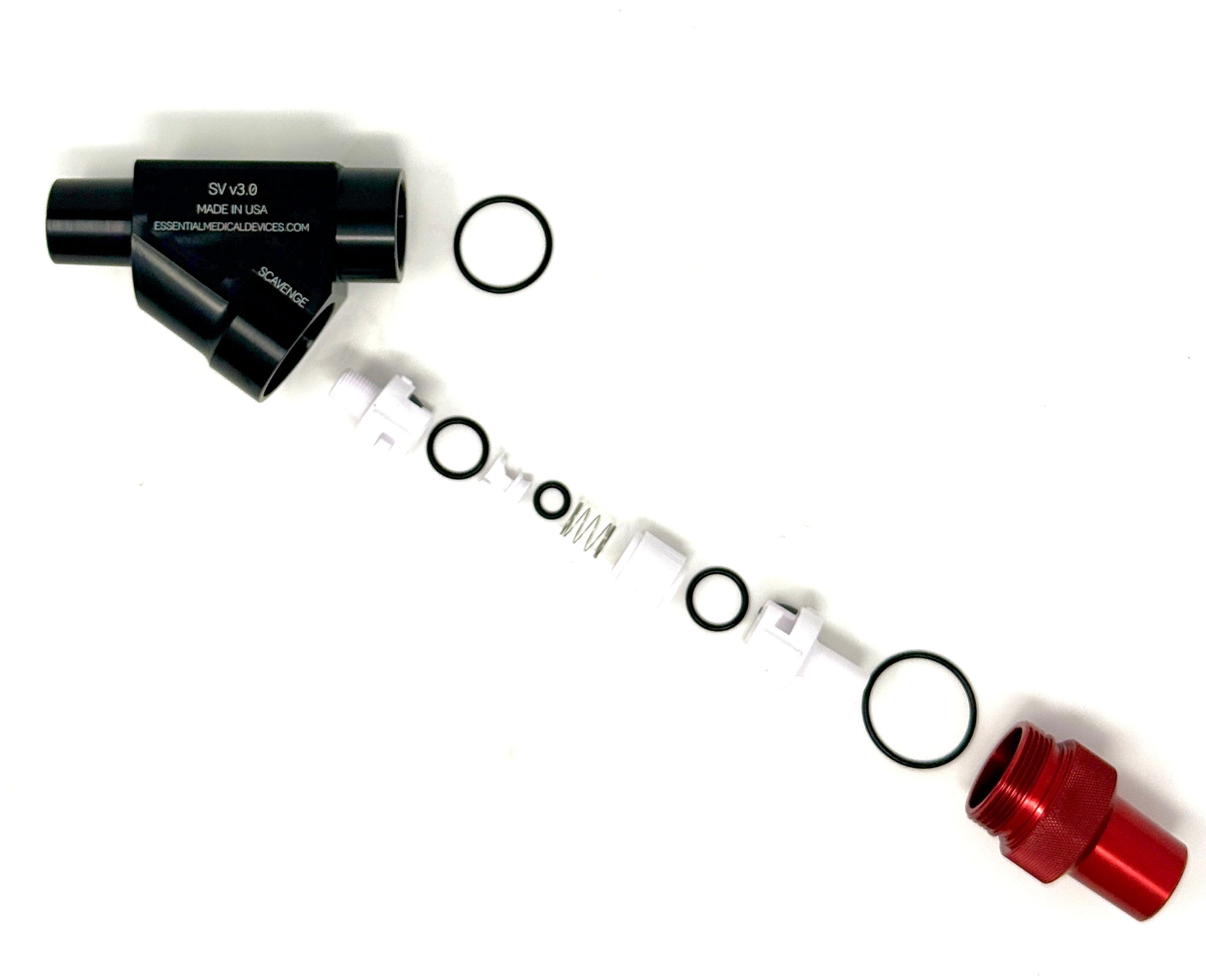 This adapter plumbs the Safety Valve into the existing scavenge system preventing Waste Anesthetic Gas release when the valve is activated.